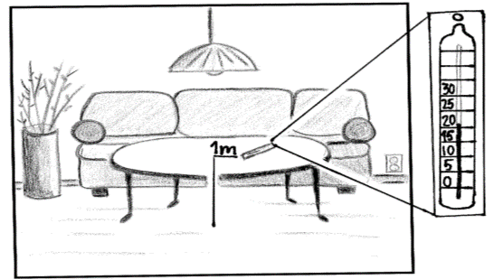 Mät temperaturen mitt i rummen en meter ovanför golvet.(ej vid fönster eller yttervägg) Temperaturen skall inte vara mindre än 20,0 grader